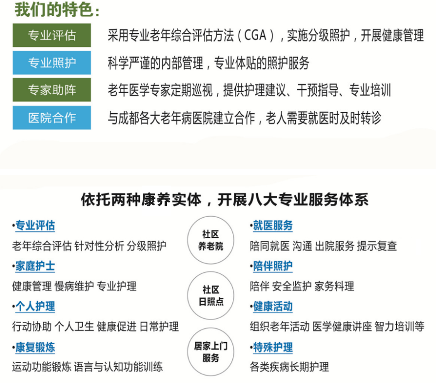 成都怡倍康養(yǎng)老服務(wù)有限公司是一家按照“康養(yǎng)結(jié)合”模式運(yùn)營的專業(yè)化養(yǎng)老機(jī)構(gòu)。我們與四川大學(xué)華西醫(yī)院老年醫(yī)學(xué)中心合作,專注于社區(qū)養(yǎng)老,并在實(shí)踐中堅持關(guān)注老年人身心健康。